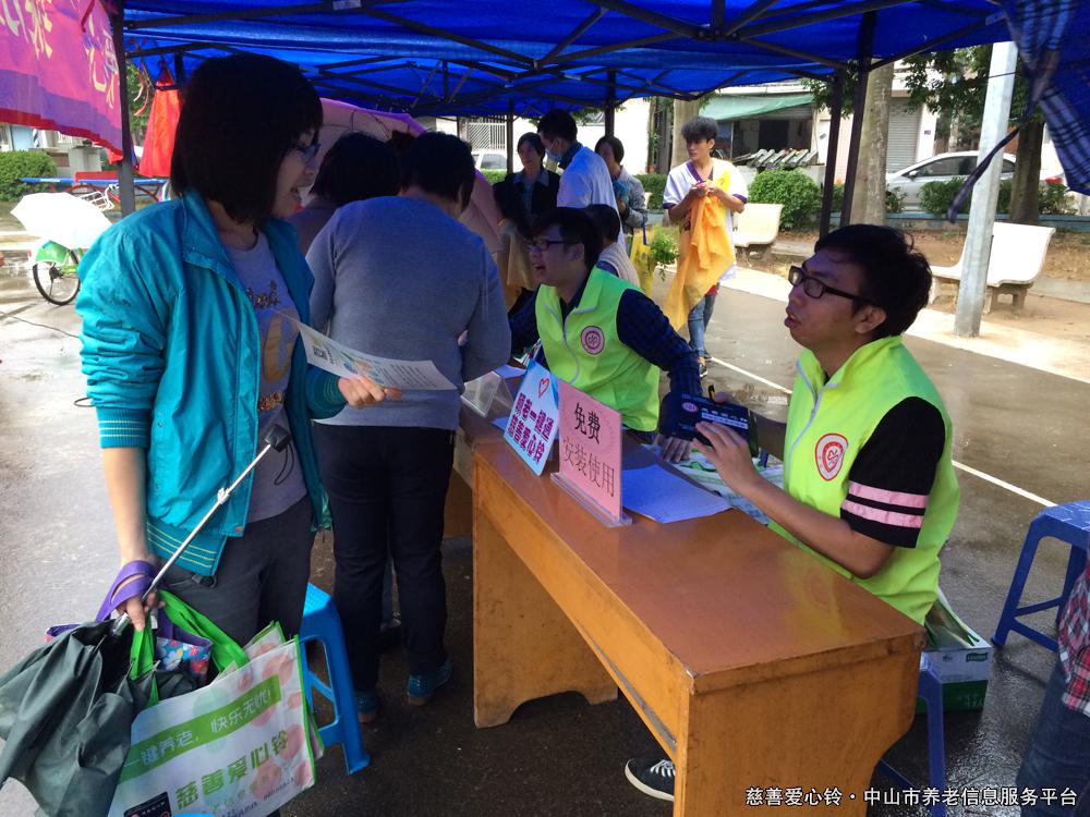“中山博爱行动义工爱心铃服务队”向居民详细介绍了居家养老服务与爱心铃使用方法,很多老人表示很感兴趣。义工说,作为居家养老服务的好帮手,慈善爱心铃一直以“设备简洁”、“功能实用”、“方便快捷”等优点深受老人喜爱。“居家养老就是指老人无需去养老机构,自己在家就能享受到所需要的生活服务。爱心铃只有两个按键,安装后我们会在系统录入用户资料,长者可以根据需求选择居家服务的绿键或紧急求助的红键,我们会立即为他排忧解难,真正做到关怀老人,让长者无忧养老。”