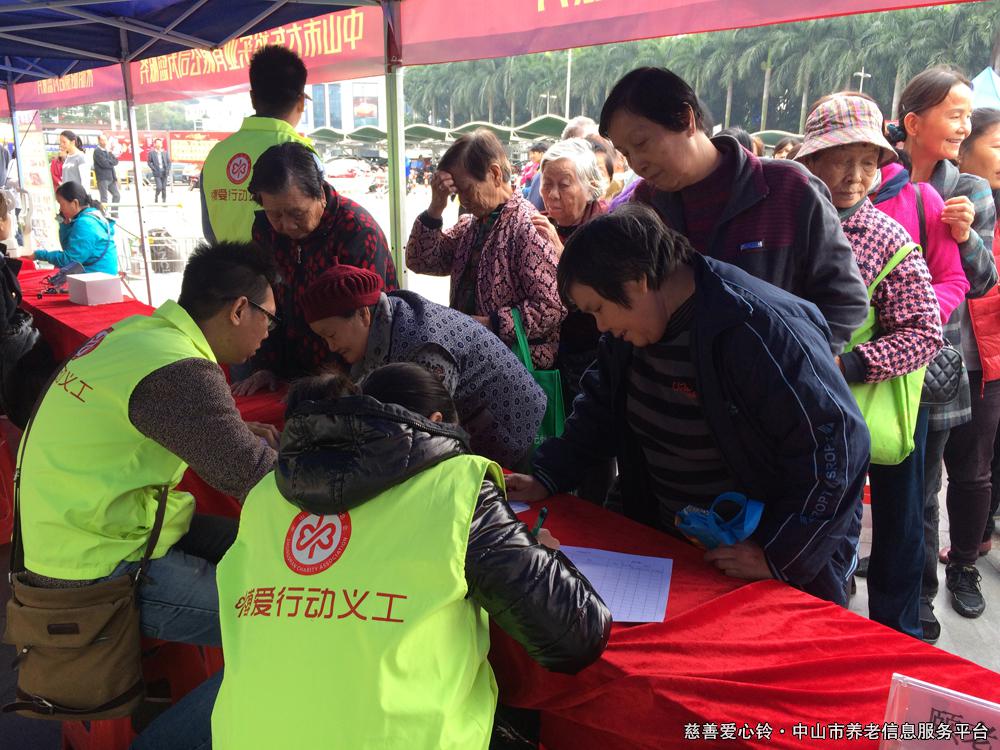 爱心铃服务队的义工为有意安装设备的老人登记安装信息。