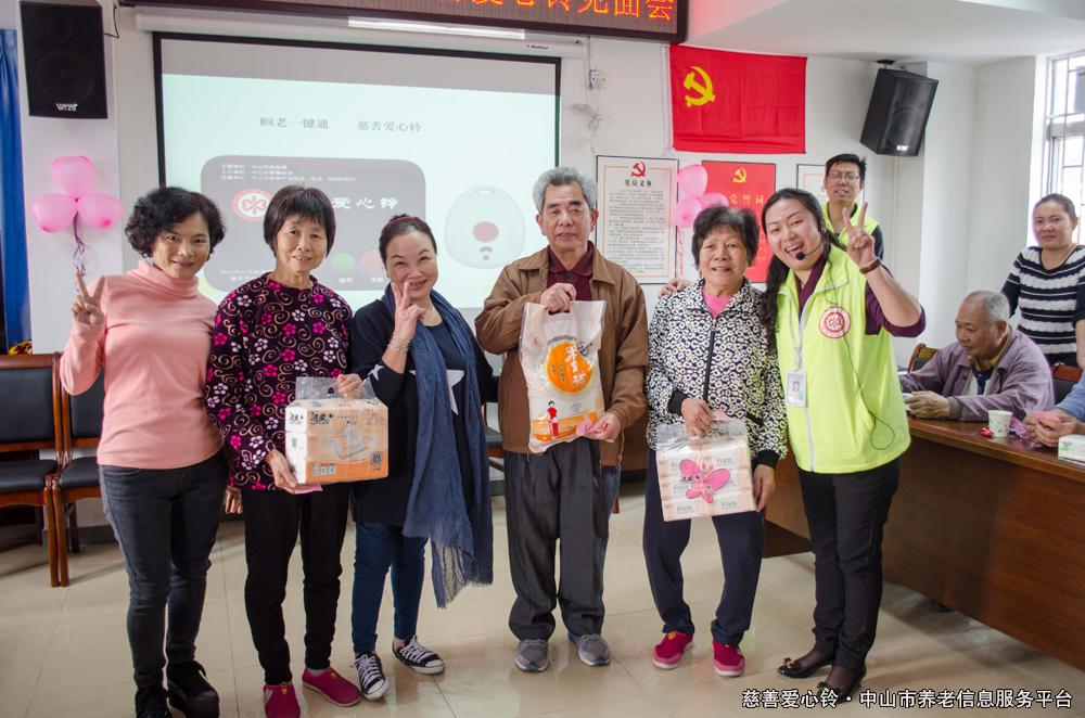 三位幸运老人得到了爱心铃的抽奖礼物。
