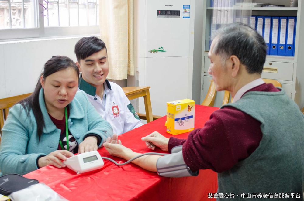 老人在现场测血压。