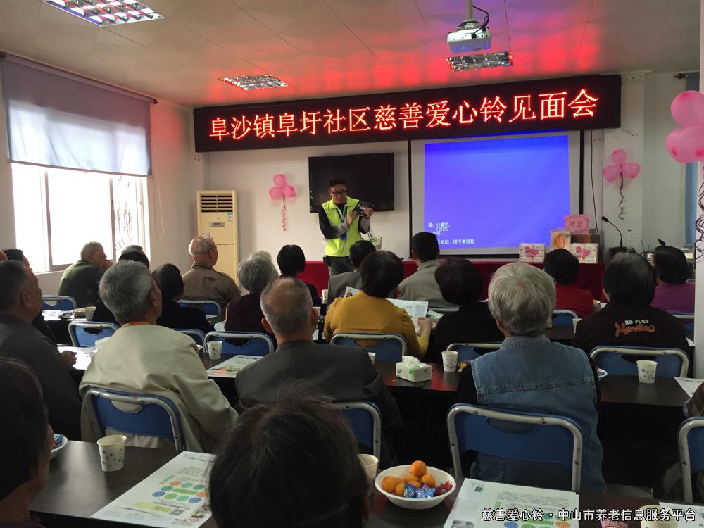 在春风和煦、春光灿烂的三月底,中山博爱行动义工爱心铃服务队来到阜沙镇阜圩社区,举办慈善爱心铃社区见面会。活动得到了广大公公婆婆的支持,现场座无虚席,让见面会在一片欢声笑语中顺利举行。