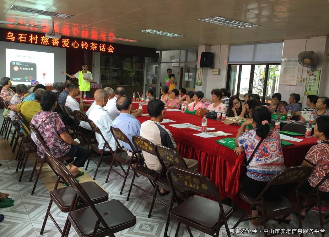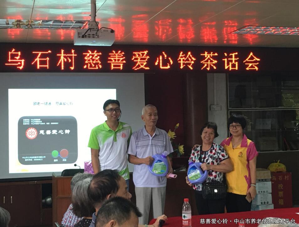 8月11日,中山博爱行动义工爱心铃服务队到三乡镇乌石村开展慈善爱心铃茶话会,向参与活动的群众介绍慈善爱心铃服务项目。