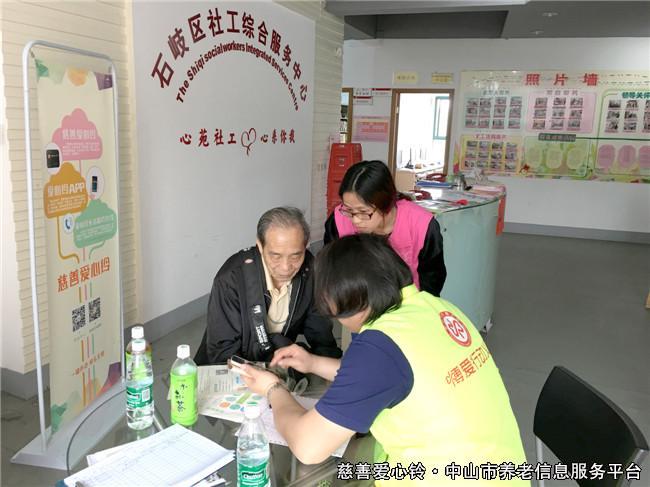 4月14日,中山博爱行动义工爱心铃服务队来到石岐区心苑社工东明社区站点,为符合条件的长者进行信息登记并安装爱心铃APP。