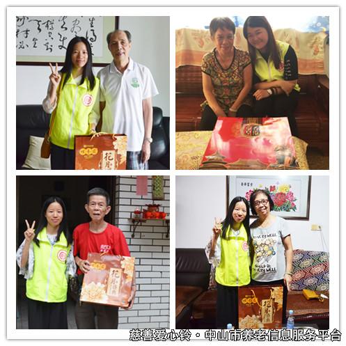 中秋自古以来就是阖家团圆的日子,爱心铃服务队给老人送上一盒盒香甜的月饼,也送上一份份真挚的祝福。当爱心铃用户接过义工特意送来的月饼,他们的脸上洋溢着欢乐的笑容。有一位年过七旬的郑叔叔和义工说,义工来探访他,他觉得很开心,虽然家里不缺月饼,可是义工那一份心意让他非常感动。