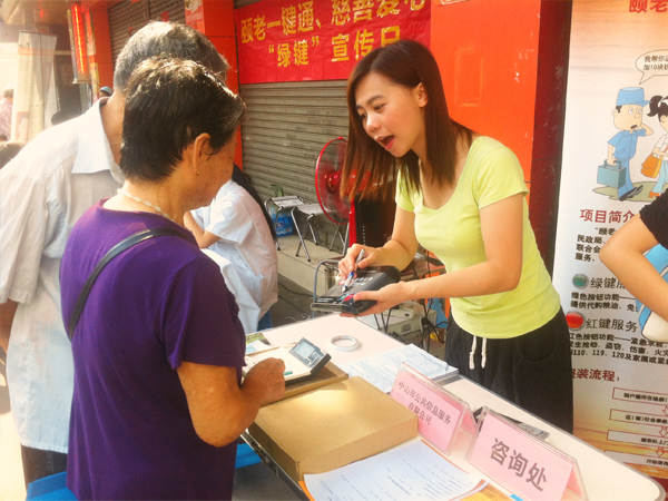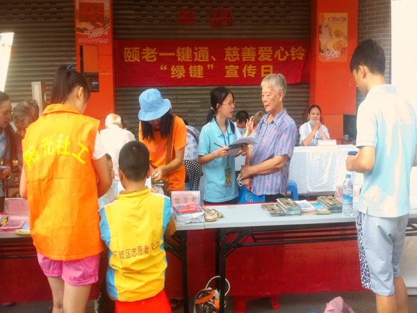 2013年8月10日,我司4名工作人员在石岐区民权社区组织了“爱心铃绿键现场推广”活动。阳光社工站、奥里德眼科以及协和医院共同参加了本次活动,民权社区也积极帮忙协调场地。活动期间,共有27人咨询爱心铃安装条件及緑键服务内容;32人咨询奥里德眼科服务;38人咨询协和医院医科服务;51人使用阳光社工站体检服务。其中,安装“爱心铃”登记情况为1人(有线)3人(无线)。