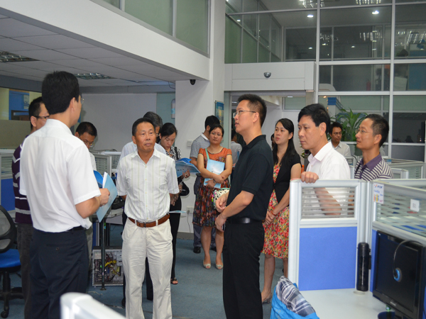 2013年8月30日上午,市领导杨文龙同志、马志刚同志一行到东区信息产业园,就市政协关于积极推动老龄化政策重点提案的落实办理情况开展视察。在听取“颐老一键通”和“慈善爱心玲”居家养老服务项目情况汇报后,相关领导与“颐老一键通”话务员(残疾人)进行了亲切的交流,详细了解了客服人员的日常工作及收入情况。