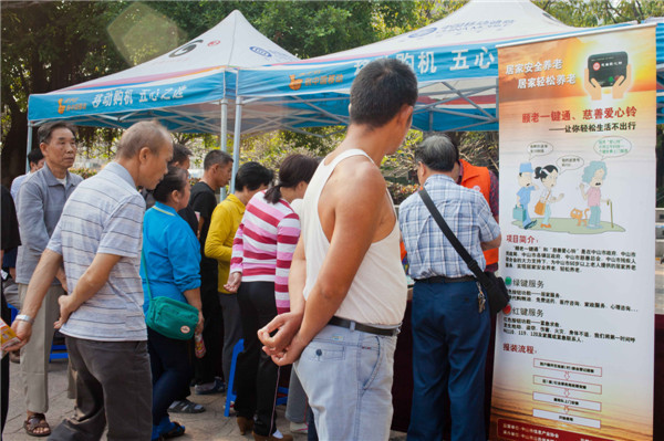 2013年10月31日,我司4名工作人员 协同石岐区仙湖社区在逸仙湖公园开展了大型宣传活动,向社区居民介绍爱心铃服务项目,并为没有安装的长者进行登记工作。活动期间,共有61人咨询爱心铃安装条件及绿键服务内容;现场派发宣传资料57份,环保袋22个;其中,接受活动问卷调查的有13人;安装“爱心铃”登记情况为5人(有线)、3人(无线)。