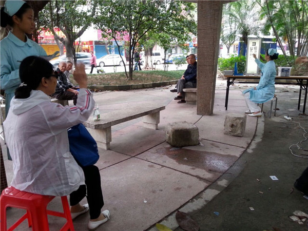尽管本次宣传活动地点距离花苑社区有一定距离,需要我司工作人员自行解决桌椅和通电问题,但是现场有热心的老人家主动帮忙拉线,活动氛围和谐互助。我司在活动现场通过赠送环保袋的形式,大大吸引了老人家参与活动的积极性,有较多的老人前来咨询,并有部分主动索要宣传单张。活动现场还设有绿键服务商提供的医科检查服务,居民在等待服务时都排序井然。现场居民对于我司和奥理德眼科医院在天气不稳定的情况下仍然坚持开展活动,一致给予了好评,他们对此次的咨询活动表示满意,并对我司工作表示支持,希望我司活动越办越好!