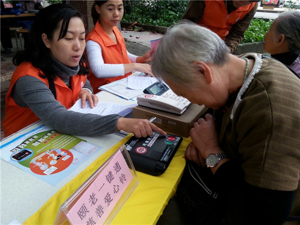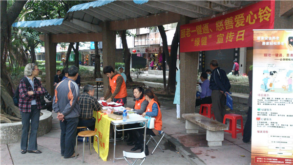 2013年11月14日,我司4名工作人员于花苑社区工作人员的帮助协调下在华柏市场旁的空地(即华柏市场巴士站)组织了“爱心铃绿键服务”活动。向社区居民介绍爱心铃服务项目,并为没有安装的长者进行登记工作。活动期间,共有26人咨询爱心铃安装条件及绿键服务内容;现场派发宣传资料30份,环保袋34个;其中,接受活动问卷调查的有22人,咨询使用奥理德眼科服务的有43人;安装“爱心铃”登记情况为5人(有线)、1人(无线)。