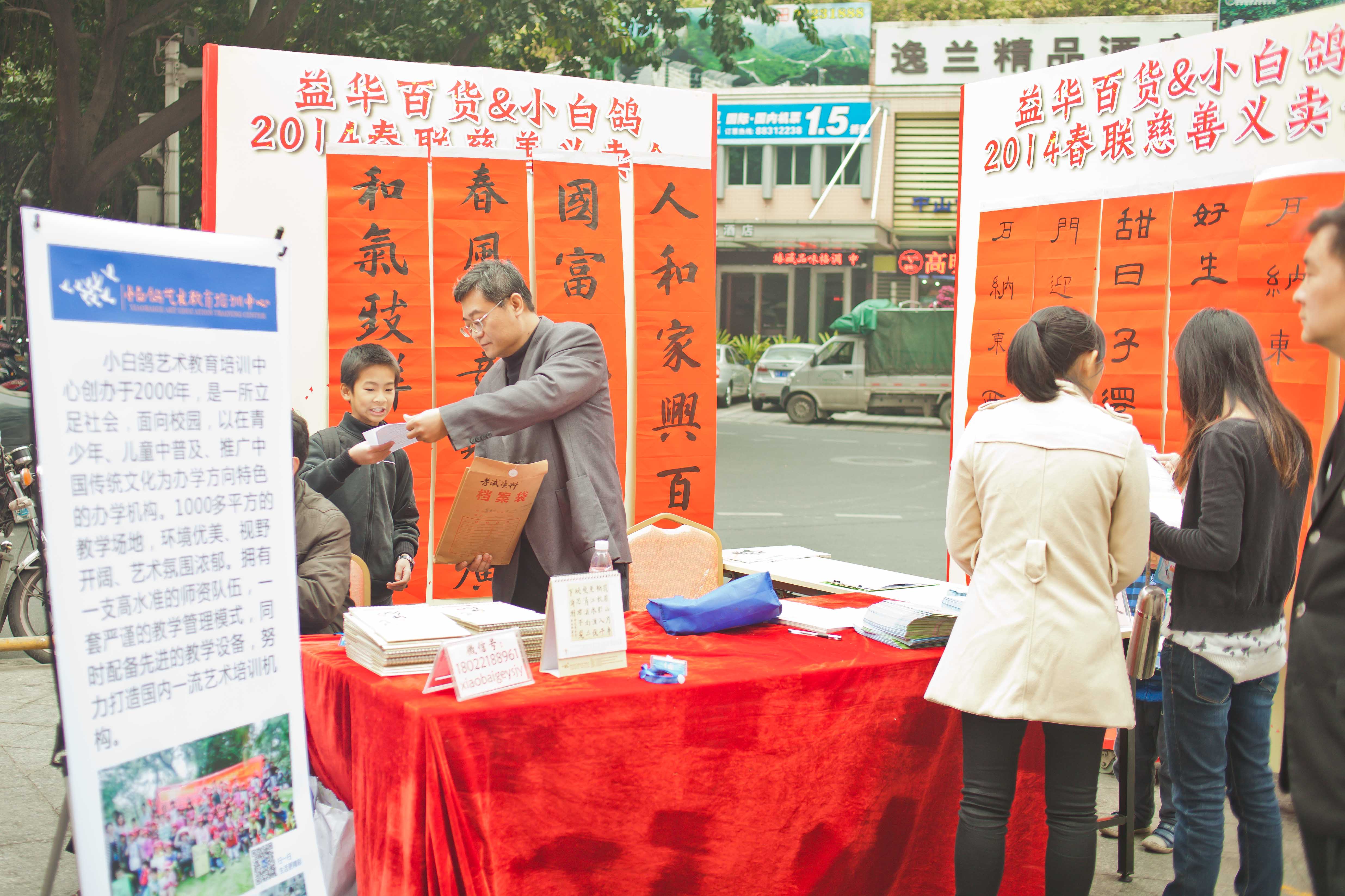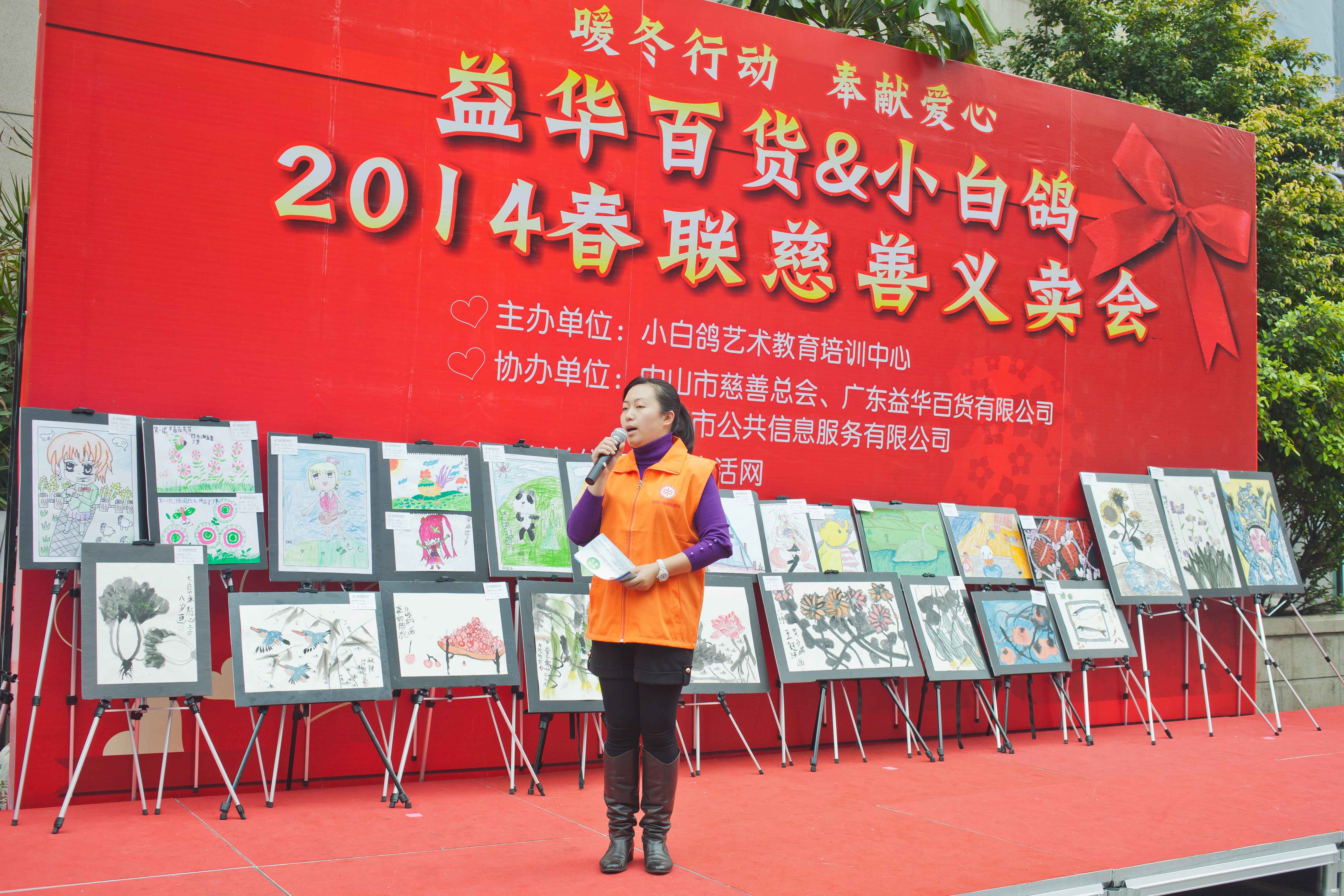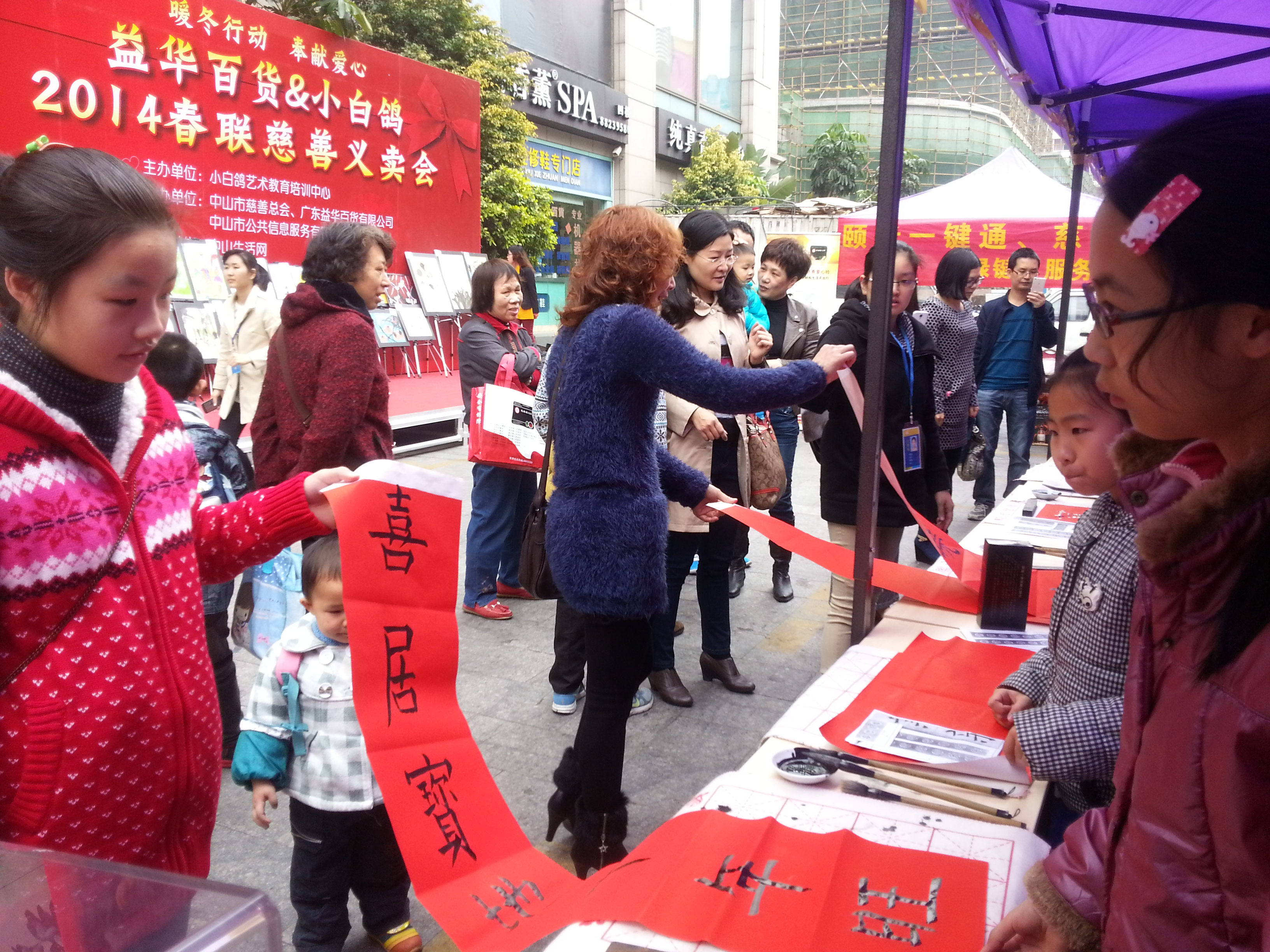 1月25日,由小白鸽艺术教育培训中心主办,中山市慈善总会联合、广东益华百货有限公司及我司协办的2014春联慈善义卖会在益华百货商场一楼拉开了序幕。