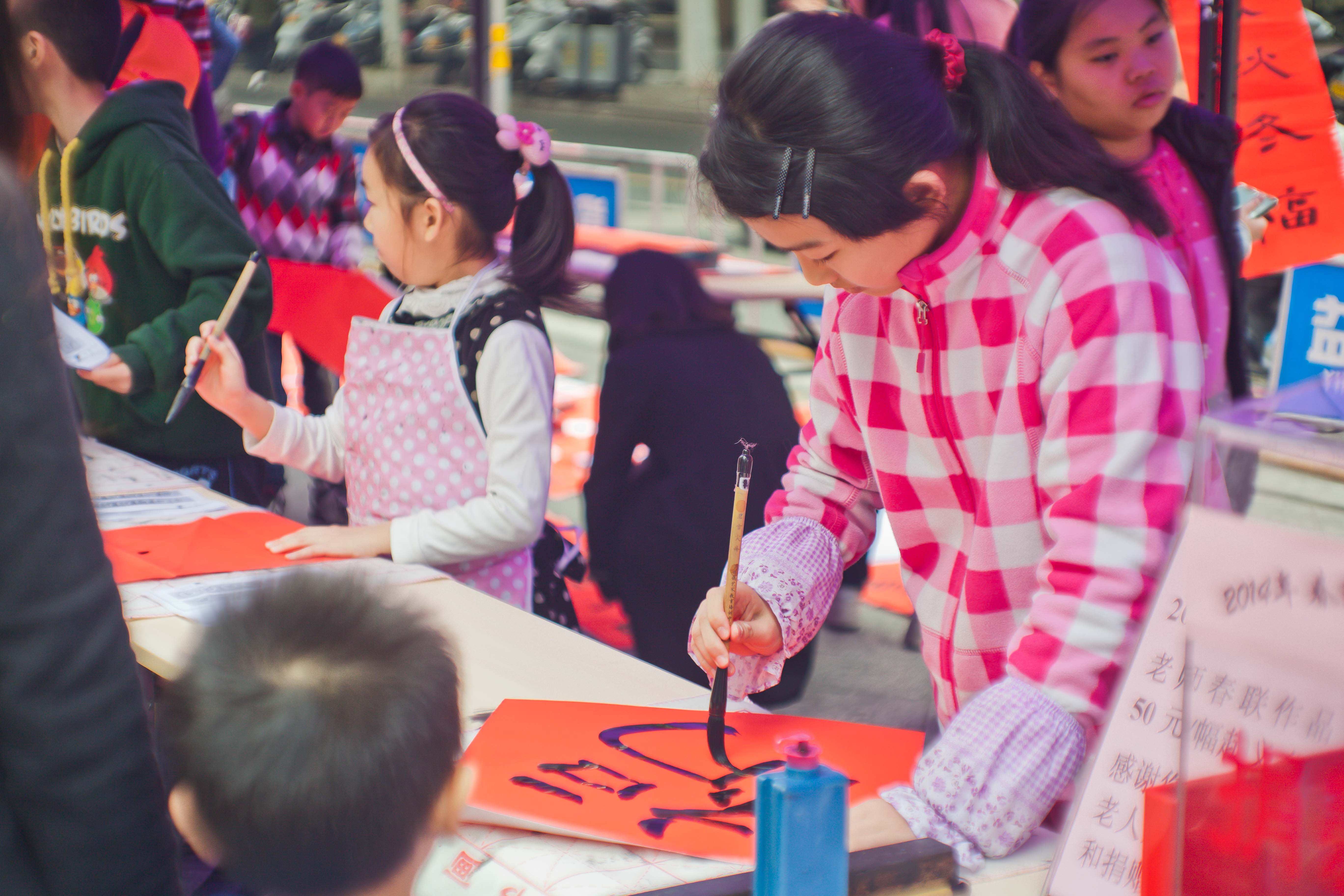 本次慈善义卖会现场气氛激昂高涨,孩子们在培训中心老师的指导下热情洋溢地书写出一幅又一幅的春联及书画作品,书法和画画功底令围观群众拍手叫好,吸引了大批善心人士纷纷上前选购心仪的春联。