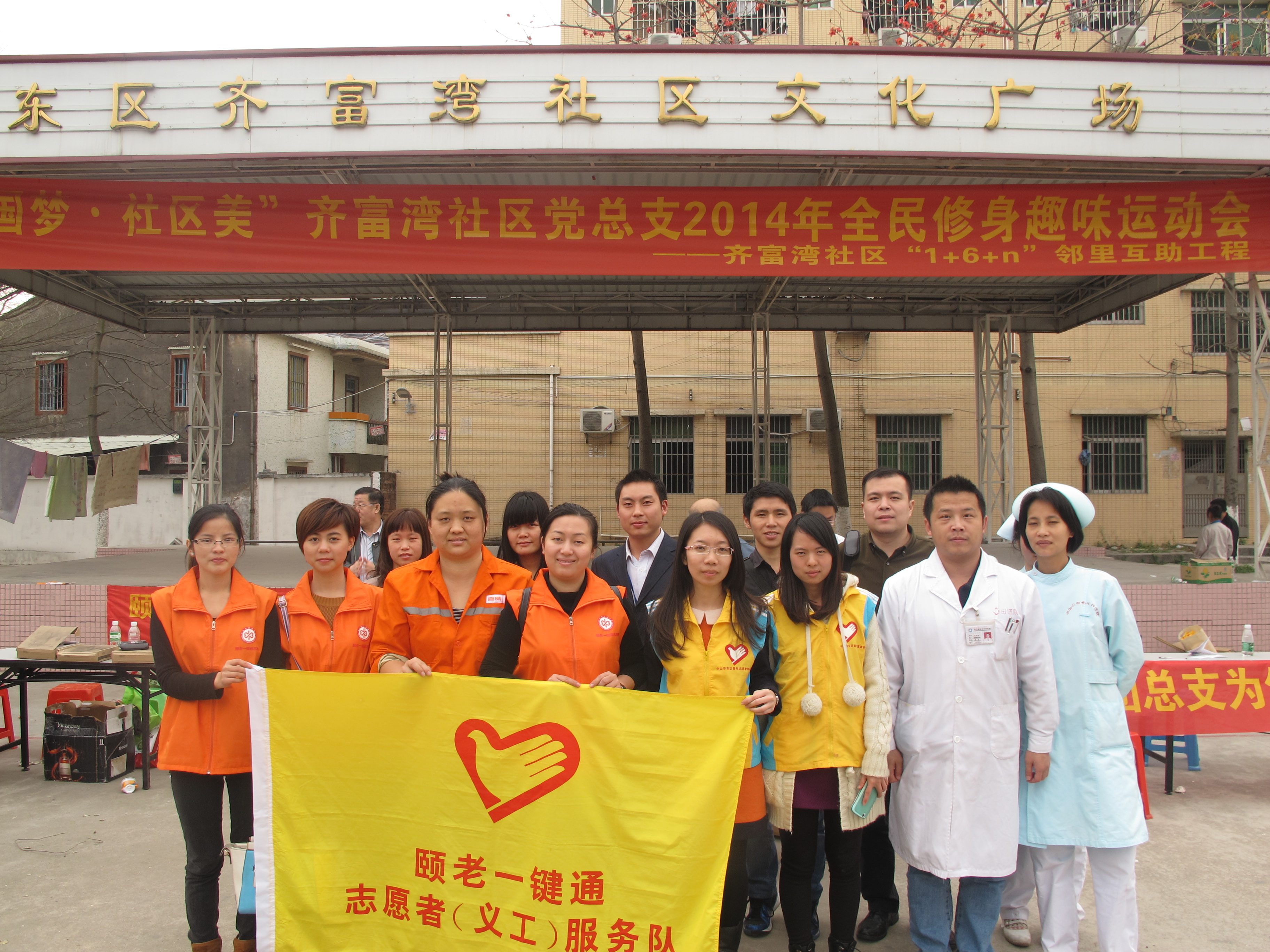 3月22日下午,“颐老一键通”义工服务队受邀参与了由东区齐富湾社区党总支在社区文化广场以“中国梦·社区美”为主题的“1+6+N”邻里互助工程活动,弘扬中山“博爱、创新、包容、和谐”精神,加强邻里和睦,宣传和谐文明新风尚。