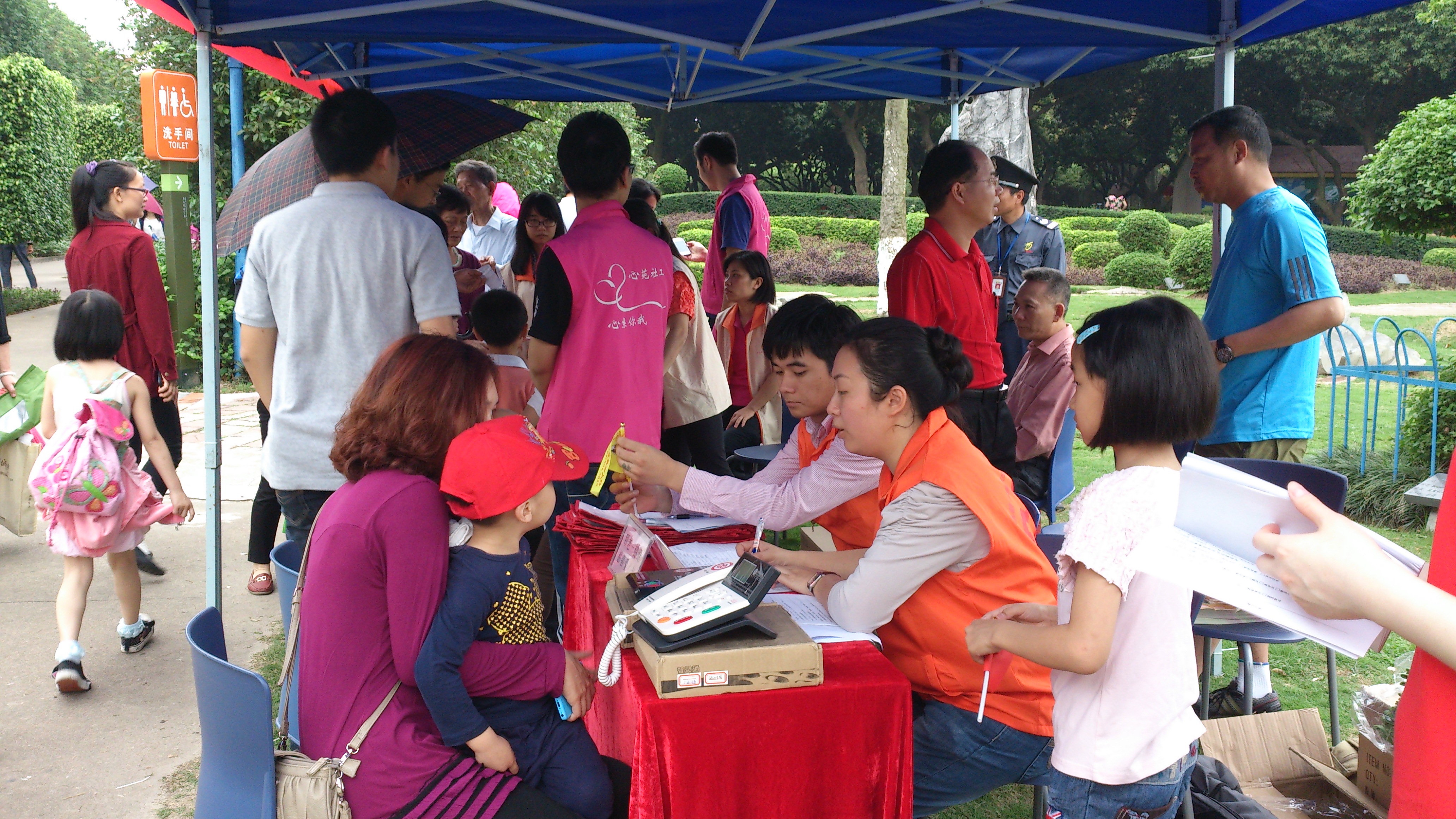 4月20日上午,东区社会事务局结合党的群众路线教育实践活动,在孙文纪念公园组织开展了宣传咨询活动,“颐老一键通”义工服务队有幸受邀参与了本次活动。