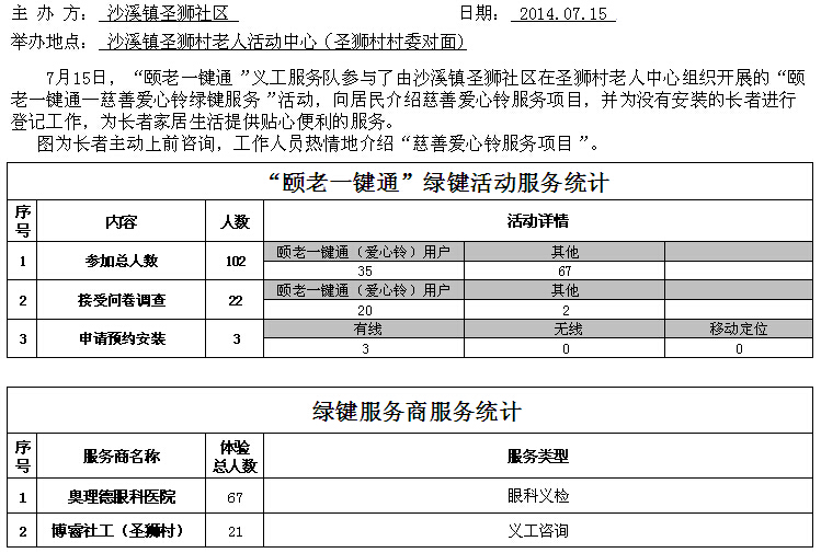 > 沙溪镇圣狮社区 绿键活动情况统计