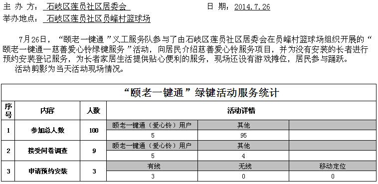 >莲员社区绿键活动情况统计