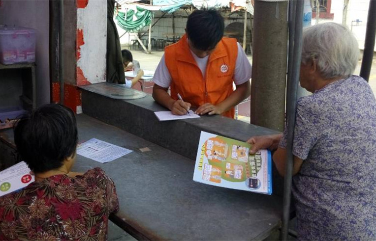 图一 热情为长者介绍“慈善爱心铃”的使用方法