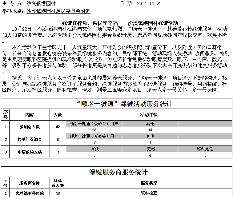 > 沙溪镇港园村 绿键活动情况统计