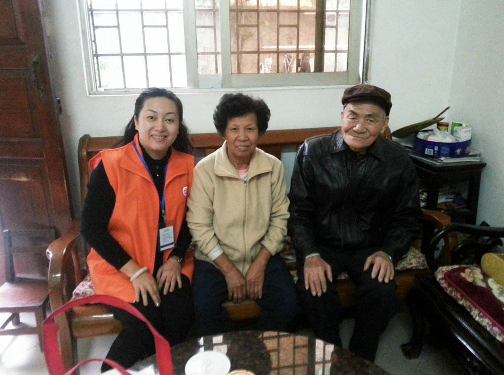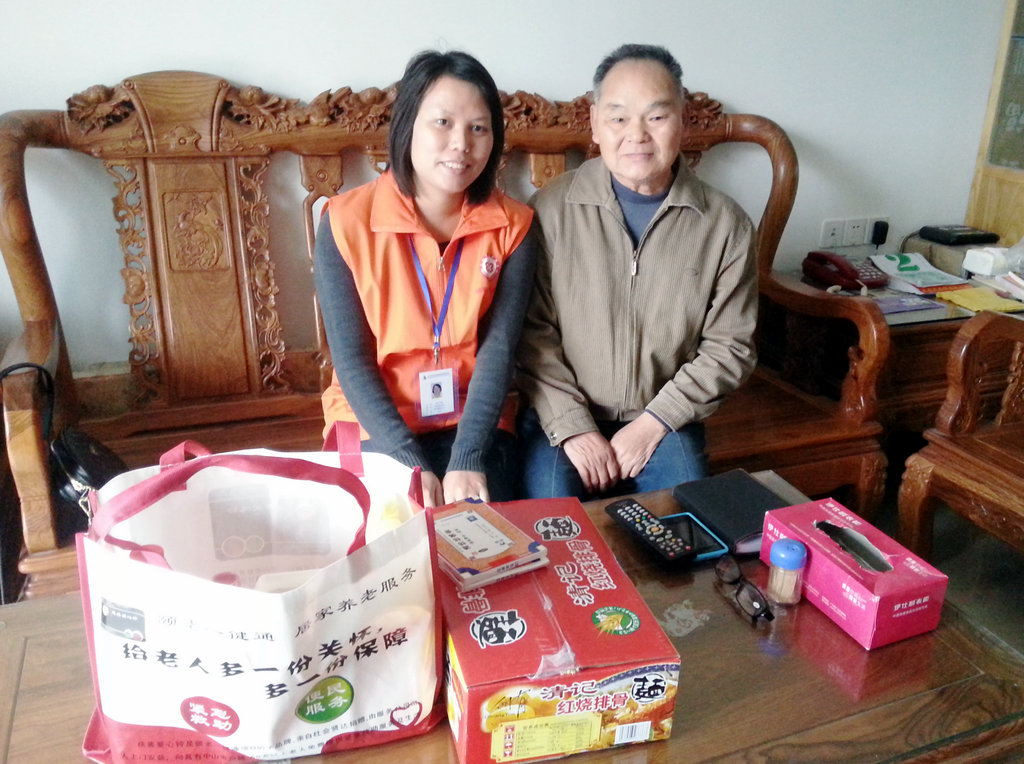 当天下午,义工和两位老人约好去探望他们,在电话里便已感受到两位老人开心愉悦的心情。因此,老人与义工见面时很快便聊开了。在聊天中,我们得知老人近期身体、生活状况良好,也常常结伴外出走动,希望经常有人能陪自己说说话、拉拉家常等。此外,义工还为两位老人家中的颐老一键通设备进行了检查和维护,并为老人送上一早准备好的日常慰问品,以感谢老人对我们工作的支持。老人非常开心和满足,连声道谢,临别时还主动和义工合影留念,并依依不舍地叮嘱义工常来坐坐。义工队的小组长廖小姐表示,“我们以后一定会继续组织更多的慰问活动,定期探访各地区的长者,尤其是那些空巢老人和独居老人,为他们排忧解难,排遣寂寞。”
