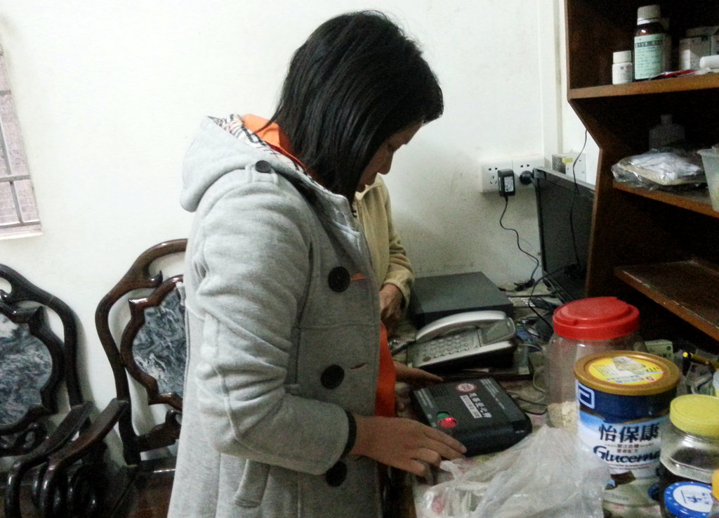 图三 义工为老人检查和维护颐老一键通设备