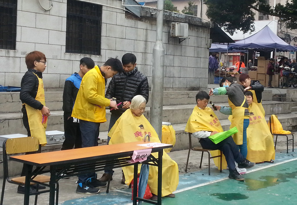 图三 服务商现美美发学院的学员为老人提供免费剪发服务