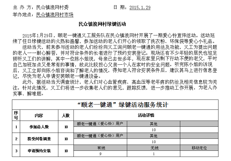 沙溪濠涌村、三乡平南村 绿键活动情况统计