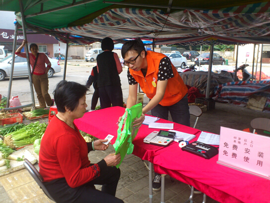图二 工作人员现场给老人家讲解爱心铃使用方式及设备功能