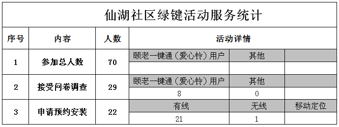 3月29日,石岐区仙湖公园春意暖暖,欢乐无限。颐老一键通义工服务队应仙湖社区的邀请,积极参与“睦邻友好社区,寻找最美家庭——仙湖社区春季嘉年华”游园活动,并在现场设立宣传摊位,为前来咨询的长者详细介绍爱心铃的功能和使用方法,并为符合条件的长者进行预约安装登记。