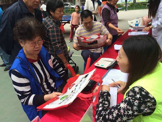 老人们正在向义工咨询爱心铃的功能和安装手续,义工耐心地一一解答。