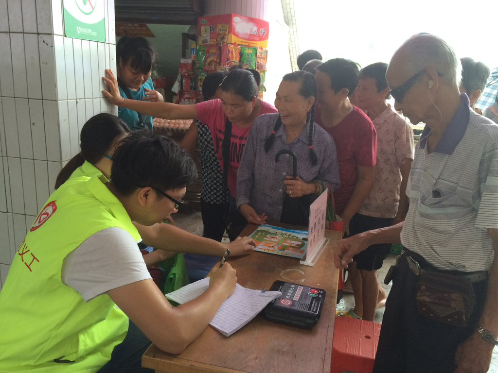老人们的热情参与也吸引了不少周边居民前来咨询。虽然有些居民暂时还未符合安装爱心铃的年龄条件(即年满60周岁),但是爱心铃小组的义工们依然非常耐心地为他们介绍了爱心铃的功能和服务范围,让社区居民对爱心铃有所了解。同时,对即将年满60周岁的长者先进行信息登记,以便日后确认安装意愿或上门安装。