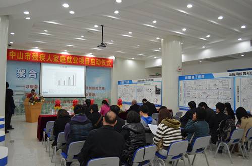1月15日,中山市2013年就业援助月主题活动日暨中山市残疾人家庭就业项目启动仪式隆重举行。家庭就业“颐老一键通”项目由市公共信息服务公司开发,主要为老人提供紧急救援、心理慰籍、生活咨询、精神关爱等居家服务,目前聘请27名重度残疾人为接线话务员,其中12名残疾人在客服呼叫中心就业,15名肢体残疾人在家里就业,中山市残联为每名居家就业的残疾话务员资助价值5000元的电脑及上岗需用设备。
