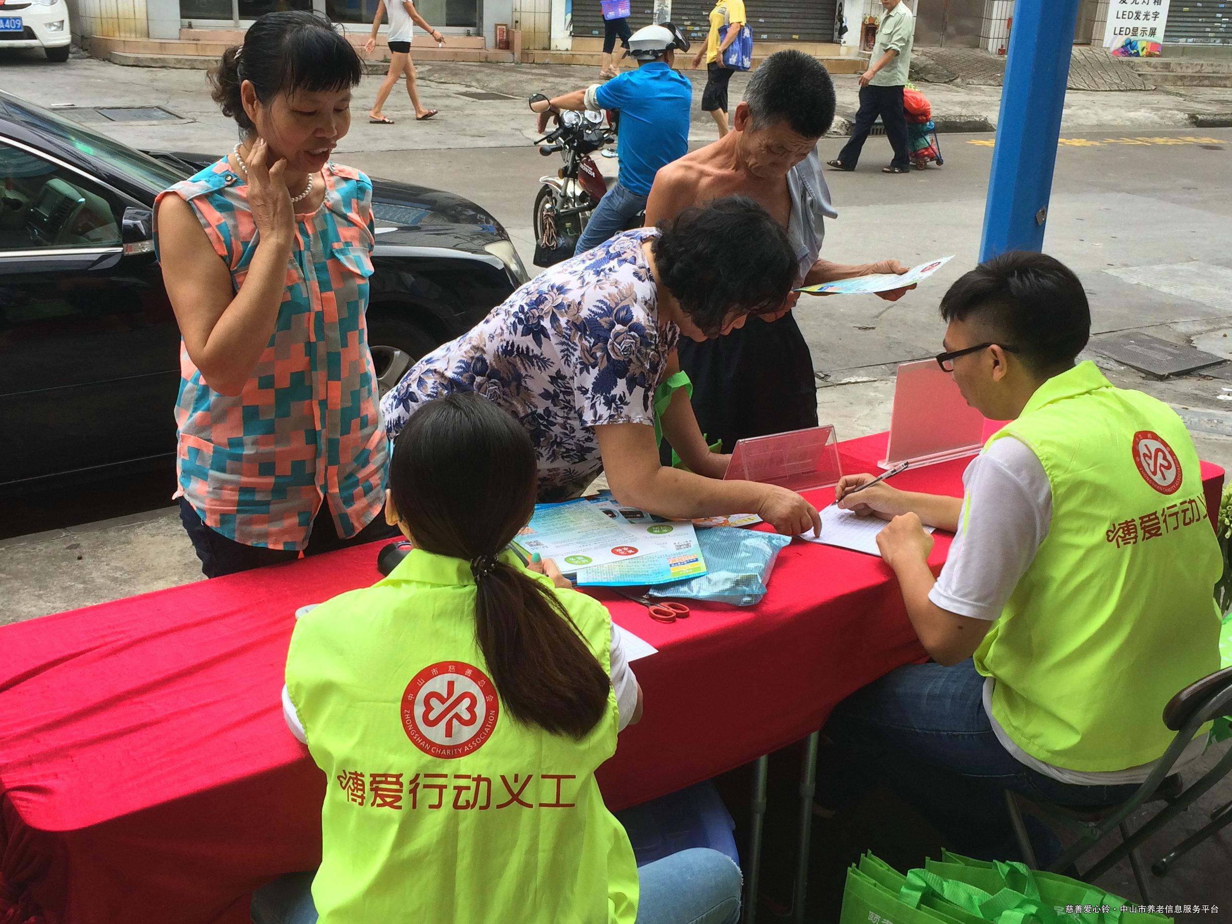 7月23日早上,在石岐区莲员社区员峰卫生站前,“博爱行动义工队夏洋社区大队爱心铃小组”开展了新一期的“爱心铃绿键服务日”活动,为社区老人介绍爱心铃项目及登记安装爱心铃信息等。尽管活动期间下起毛毛细雨,但依然有不少社区居民前来参与活动。