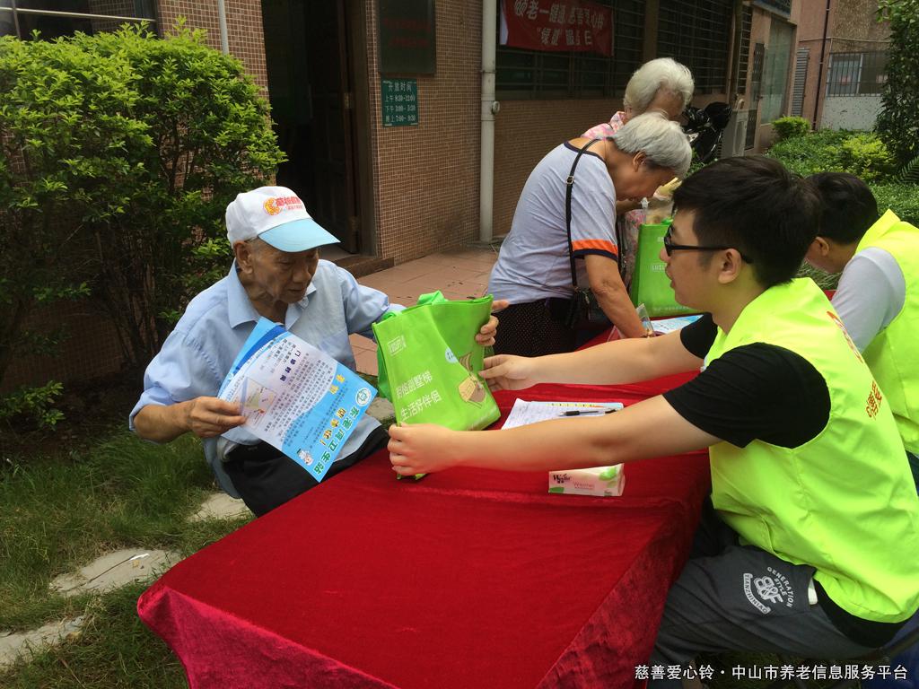 向参与活动的群众介绍慈善爱心铃服务项目, 为符合条件的长者进行登记工作并派发小礼品 |