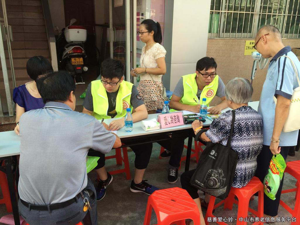 向参与活动的群众介绍慈善爱心铃服务项目, 为符合条件的长者进行登记工作并派发小礼品 |