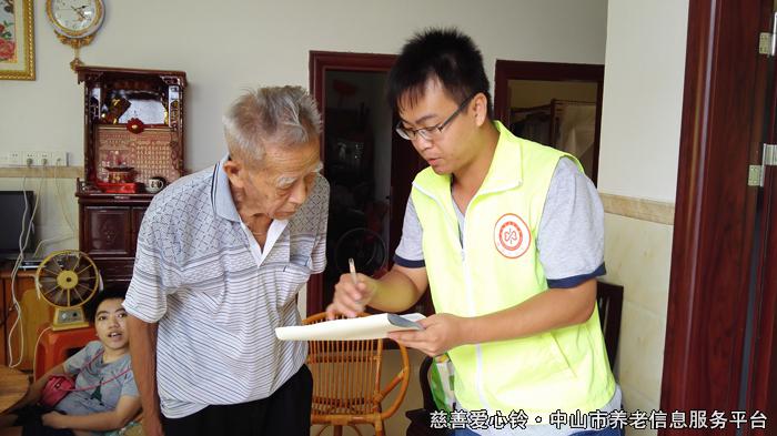 为庆祝九九重阳节及我国第六个“敬老月”的到来,10月28-29日,由中山市老龄办、中山市慈善总会主导,中山博爱行动义工队爱心铃服务队组织实施的“2015年‘敬老月’慈善爱心铃敬老慰问活动”顺利完成。本次活动得到了各镇区社会事务局与社区的大力支持,4个探访小组深入到东区、石岐、五桂山、沙溪、民众、港口等16个镇区,共探访了37户老人。长者的热情、义工的体贴,还有探访中的笑声,都成为了这次慰问最美好的回忆。