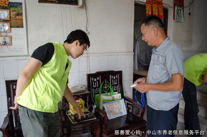 住在南下的黄伯伯与刘阿姨,家装爱心铃已4年,是爱心铃的忠实粉丝。“家里就我和老伴两个人住,子女也会每天过来探望我们,但毕竟家里经常没有年轻人在,平日有什么事我也会使用爱心铃绿键!”阿姨指着爱心铃说。随后同行的维修人员帮阿姨检测爱心铃,主机功能一切正常,而且爱心铃被擦得一尘不染,十分干净。“阿姨,爱心铃配备的遥控器,你们也可以将它放在床头等位置,只要在无障碍30米内都能使用,”义工一边拿着遥控器一边指导阿姨使用。坐在一旁的伯伯,也与义工分享了他们年轻的往事。伯伯表示,以前生活艰苦,吃无定时,那时最大的心愿就是子女听话。“现在他们每个都成家立业了,生活也比以前好了,而且我们还能享受到政府带来的惠老项目政策,这真是我们以前没想到的!”
