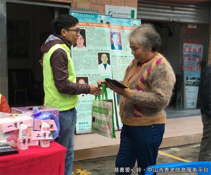 11月11日,南区良都社区上塘村这个平日安静的村子,今日却格外热闹!原来是中山博爱行动义工爱心铃服务队前来设摊普及爱心铃的推广使用,现场还邀请了服务商中智药房与奥理德眼科医院为长者免费量血压与测试视力。