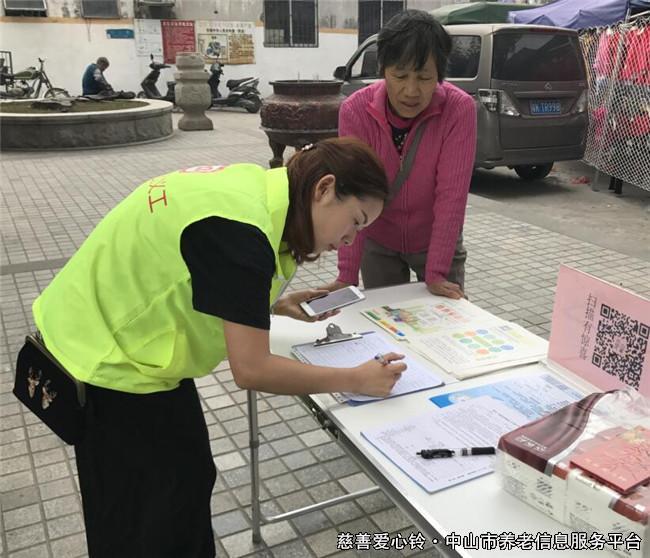 义工一摆好摊,好奇的街坊们就围了过来。正在晨练的刘伯伯得知是爱心铃,立马过来咨询:“我想装个爱心铃,需要提供些什么资料吗?”原来,刘伯伯的邻居上个月装了个爱心铃,刘伯伯去串门的时候发现爱心铃不仅能预约挂号还能紧急求助,简直是为老人量身定做的好帮手,所以一直心心念念地也想装一个爱心铃。其实,中山户籍60岁以上的老人只需提供个人信息进行登记即可免费安装爱心铃。听完义工的讲解,刘伯伯与街坊们都点赞称好并做了信息登记。