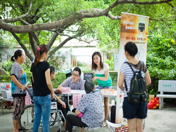 2013年9月10日,我司4名工作人员在西区长洲社区开展了“爱心铃绿键现场服务”活动,向社区居民介绍爱心铃服务项目,并为没有安装的长者进行登记工作,现场设有爱心铃咨询、眼科检查等摊位,现场气氛活跃。活动期间,有10位长者接受活动问卷调查;现场派发宣传资料52份;共有28人咨询爱心铃安装条件及緑键服务内容;其中,安装“爱心铃”登记情况为2人(有线),3人(无线)。