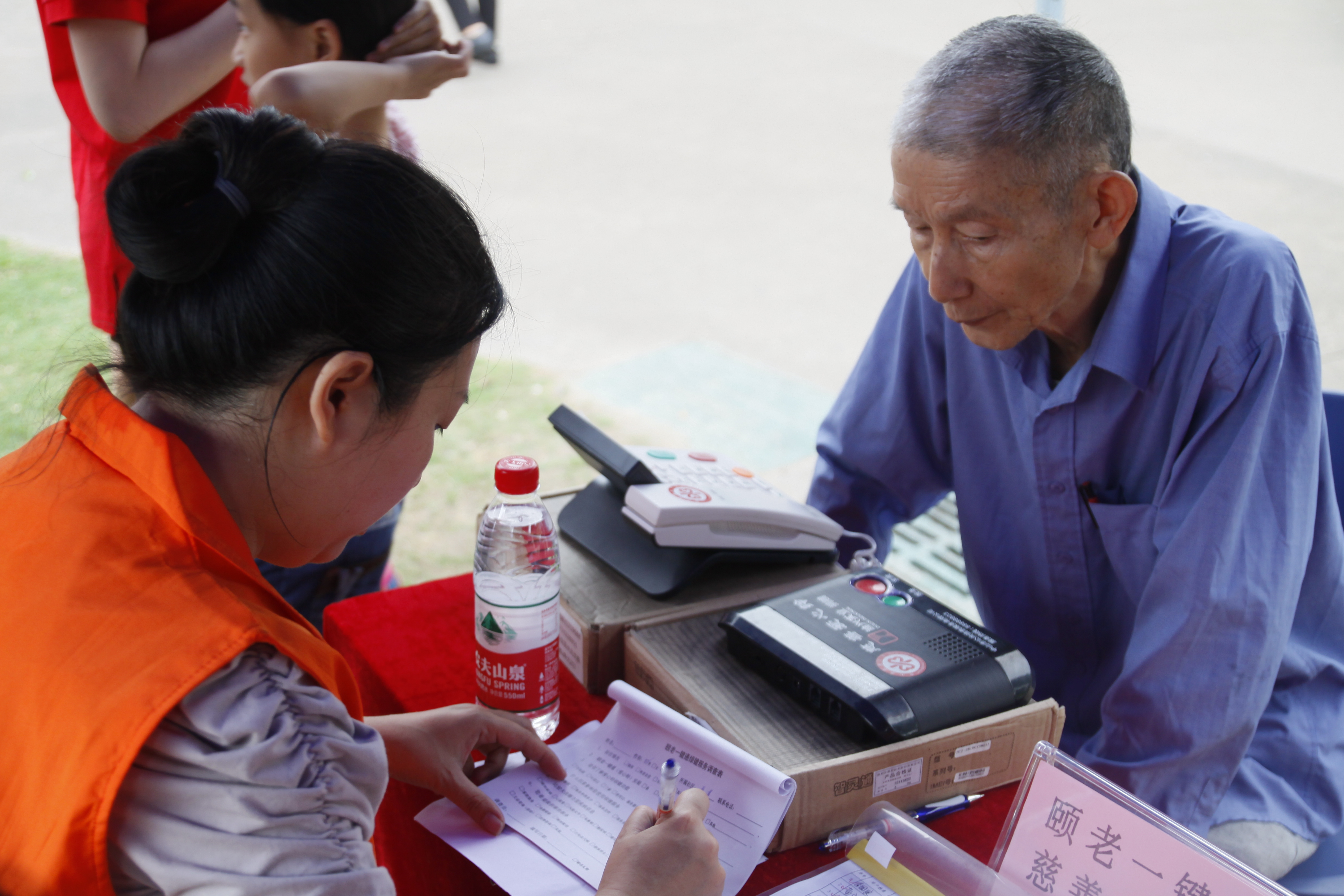 “颐老一键通”义工服务队在本次活动中充分地展示了爱老、敬老的服务精神,耐心地向现场群众详细介绍慈善爱心铃的使用方法及绿键服务内容,并进行预约安装登记。同时,与迪兴实业联手合作,向参与问卷调查的居民赠送雨伞、电子相册、爱心物流环保袋礼品一份。期间有很多年轻居民主动上前索取宣传资料,他们纷纷表示慈善爱心玲项目为家中老人的居家养老生活提供了非常全面的安全、轻松、便利服务,能令儿女安心,老人称心,也是儿女给老人的多一份关怀,多一份保障。