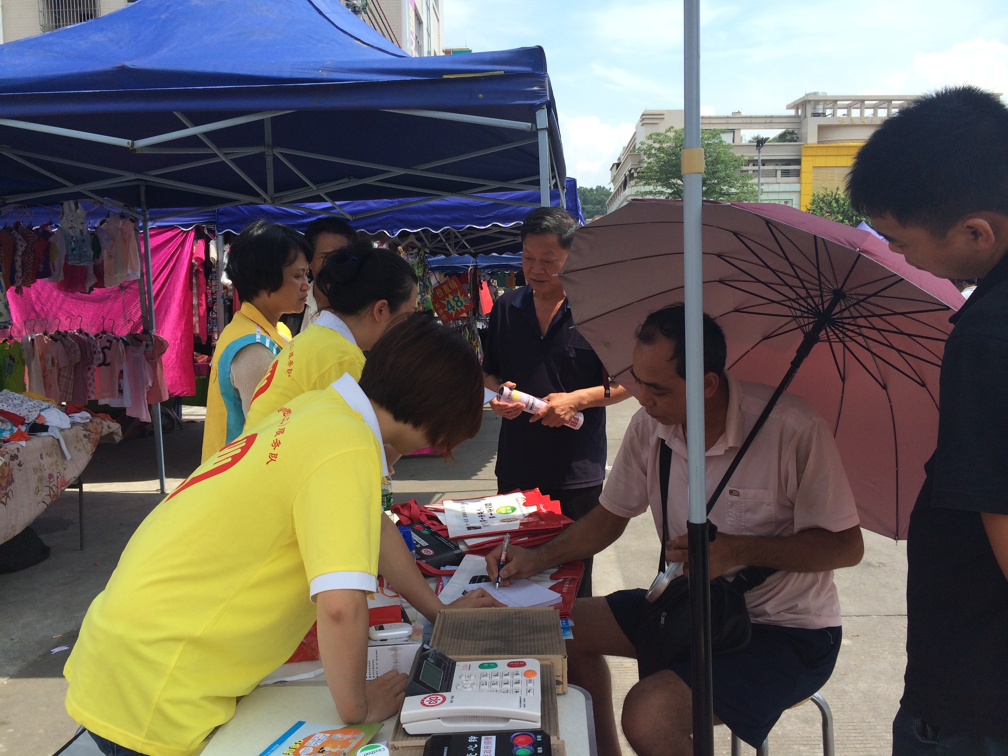 图三 为居民介绍“慈善爱心铃”绿键服务