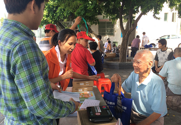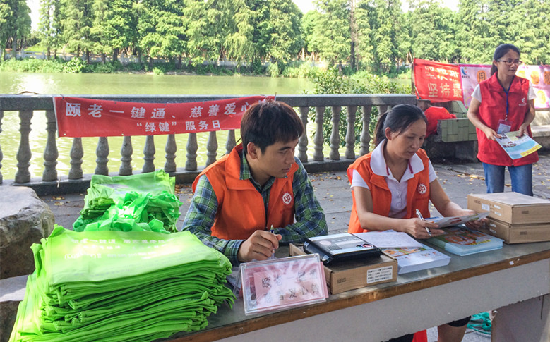 图二 “慈善爱心铃”工作人员为长者介绍爱心铃使用方法