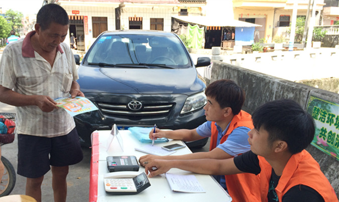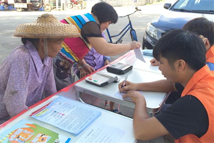 图二 长者主动上前索要宣传资料了解“慈善爱心铃项目”