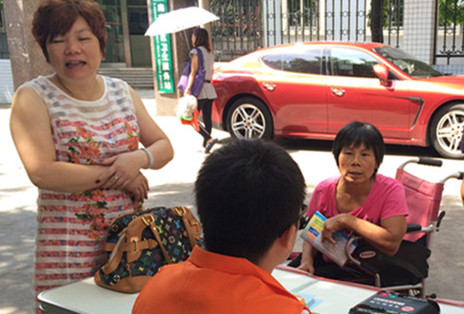 图二 居民主动上前咨询“慈善爱心铃项目”
