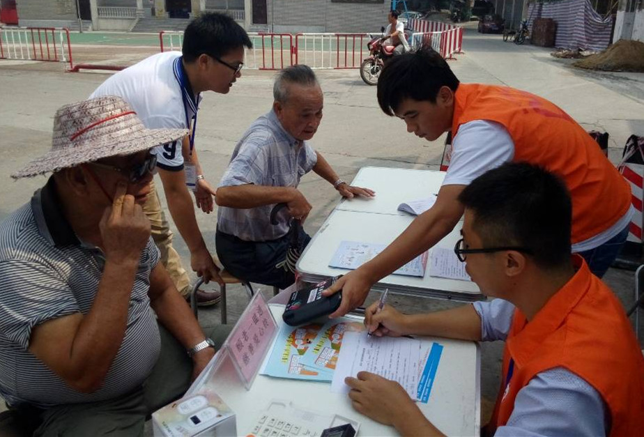 图一 热情为长者介绍“慈善爱心铃”的使用方法