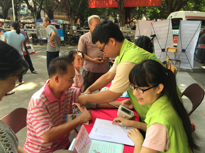 活动当天,义工们除了对爱心铃进行宣传推广外,还免费为老人提供血压测量、听力检查、验眼等义诊服务,现场秩序井然,老人们纷纷排队候诊。在等候的过程中,爱心铃小组还安排义工陪老人们聊天解闷,了解老人们的健康状况和日常生活需求,更好地为老人提供健康养老服务。其中,张伯夫妇的情况特别引起义工的注意。原来张伯夫妇是失独老人,精神非常空虚,感觉“老无所依”。义工将张伯夫妇的情况认真记录在案并反映至爱心铃客服中心,客服中心将根据老人的情况调整每月问候、回访次数等实际工作,及时给予老人关怀。